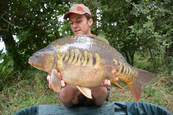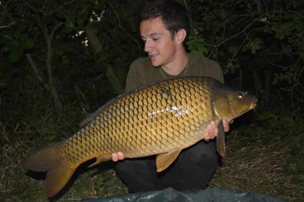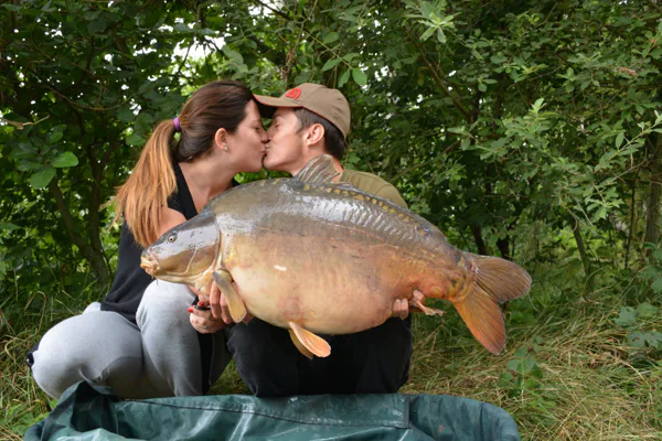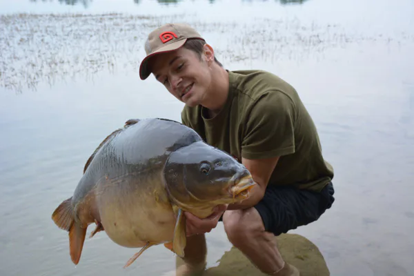 Už po pár hodinách se mi nad krmným místem ukazují ryby,ale velikostně to nevypadá nijak slavně,ale to nic neznamená. Začíná se stmívat a dostávám první rybu do podběráku a to šupíka kolem 11 kg. Lehce před půlnocí ještě dostávám krásného, menšího řádkáče. Prut ve 12 stahuji a jdu si lehnout. Holky už spokojeně taky spaly,takže vypadalo, že se mají dobře. Před 4 ráno krmím stejnou dávkou, jako předchozí den. Kolem 6 ráno mě ze spacáku vytahuje jízda. Ze začátku bylo znát, že tahám větší rybu. Bohužel díky překážkám jsem po chvilce nucen nasednout na člun a rybu vytáhnout ze člunu. Po chvilce podebírám krátkého za to dost tlustého a širokého lysce. Jakmile vytahuji rybu do člunu do podložky, tak mi jeho váha teprve řekla, jak opravdu velký je. Na břehu kapra vážím a zjišťuji, že má po odečtení vážící tašky krásných 20,7kg. 21mm Extáze v pepři opět nezklamala. Tak to je masakr říkám. Rychle opatrně budím Nikču, aby mě vyfotila. Ta trochu rozvrávoraně vylézá a fotí mě. Já jí děkuju, že se mnou jely a přinesly mi takové štěstí. Rybu pouštíme a já nahazuji prut do svých míst.
