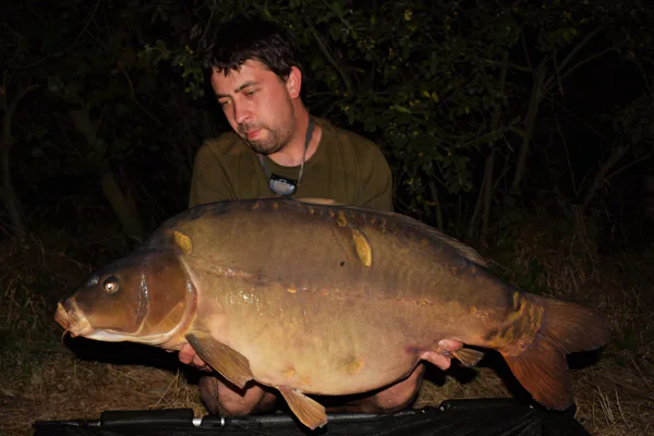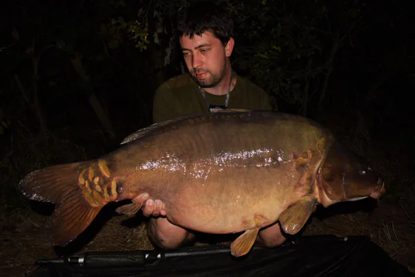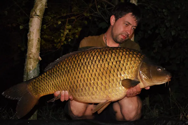 Pomocí Deepra jsem si zmapoval dno a našel menší lavici. Nakrmil asi 1,5 kg Massive feedu a 0,5 kg Krilla. Jeden prut jsem nahodil na lavici a druhý kousek za ní. Prvního zvuku hlásiče jsem se dočkal druhý večer před koncem chytací doby. Byl to čistý, bojovný šupináč kolem 15 kg.