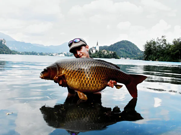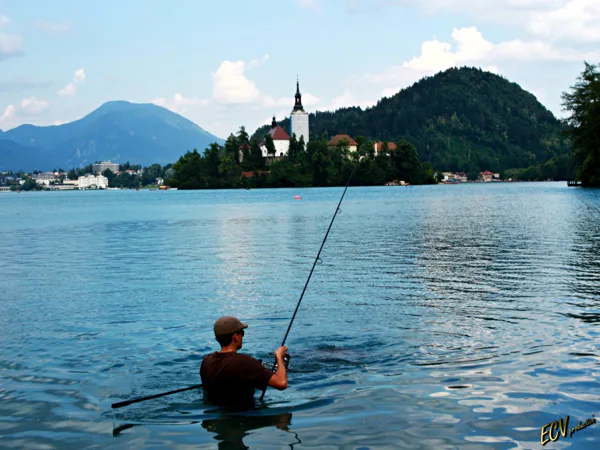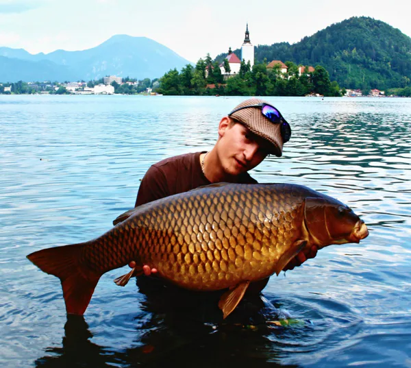 Už pri prvom pohľade na vodu som uvidel majestátne kapre, pomaly plávajúce popri brehu. Nebolo treba ďalej premýšľať. Prvé šťastie skúsim tu! Hľadať lavice na voľnej vode bolo v tomto prípade stratou času. Príbrežná zóna sa javila ako omnoho rozumnejšia voľba. Niekoľko rozpolených guľôčok Krillu letelo do vody a za nimi pripravená montáž s Criticalskou v priemere 24mm. Slnko vyšlo nad majestátne Alpy. Kapre však nemienili spolupracovať tak, ako som dúfal. Nechali sme teda prikŕmené miesto odpočívať a vydali sme sa s Alčou na obchôdzku jazera s nádejou, že objavíme ryby niekde inde. Pohľad, ktorý sa nám po asi kilometri chôdze naskytol, nám vyrazil dych. Obrovský húf kaprov len tak, v pokoji stál pod brehom v tieni prevísajúcich konárov. Už som pred tým vídal kapre stojace pri hladine, ale to čo som videl tento raz, ma naozaj odrovnalo. Ryby s prehľadom prevyšujúce magickú 30 kilogramovú hranicu. Neskutočné prasatá!!! Chvíľu sme s Alčou na seba hľadeli. Doslova sme nevedeli, čo robiť. Šok sa však rýchlo zmenil v lovecký pud. Len nič neunáhliť. Nástraha dopadla presne tam, kam mala. Dokonalé, teraz to musí prísť! Netrvalo dlho a záber sa dostavil. Obrovský lysec z dôverou prijal malú guľôčku. Kolená sa mi triasli ako nikdy v živote. Silný protivník si však nakoniec vybral svoju daň a podarilo sa mu dostať sa z mojej pasce. Bolo mi do plaču. Sklamaný z neúspechu sme s Alenkou pokračovali v ceste okolo Bledu. Malou útechou v slnečnom dni nám bol ľadovo vychladený džús. Cestou ku kempu sme stretli ešte zopár partií kaprárov. Až na jedných Angličanov boli všetci bez kontaktu.