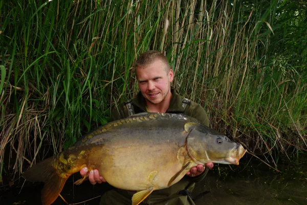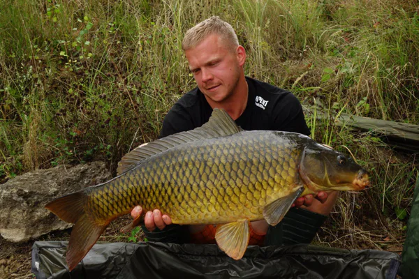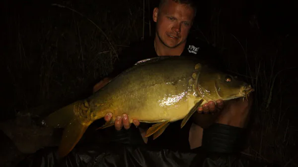 Asi nejkrásnějšího kapra se mi podařilo ulovit koncem května, kdy jsem se dostal odpoledne na ryby. našel jsem si tvrdé místo v nánosu s blátem které jsem roz krmil Devil krillem. Ten den přichází tři záběry, ale hned ten první stojí za to, zdolávám nádherně stavěného lysce. Poté ještě přichází dva dorostenci. Všem zachutnala kombinace dipovaného devilla a banánové plovky namočené v esenci a sladidle. Během dalších dvou jednonoček na které se mě podařilo dostat nebyl výsledek nikterak valný. Co se týče počtu záběrů byl to masakr bohužel všechno kapříci do 50 cm. Prozatím naposledjsem se k vodě dostal na tři dny. Pokoušel jsem se rybu selektovat a zvolil Extasy, kterou jsem ze začátku dipoval černým pepřem, nicméně se velikost ryb moc nezvětšovala a chodil záběr za záběrem