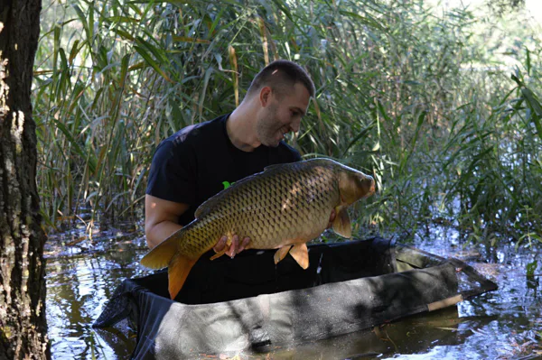 Jelikož je na tomto revíru pár míst se starými dřevěnými moly a my na takovém místě byli, moc nám to do karet nehrálo. Molo bylo během chvilky pod vodou, což mi hodně znepříjemňovalo dobíhání k prutům při záběru. I přes vedra, která zde panovala jsem na večer v den příjedu navedl do podběráku první 8kg rybu. Vloni jsem na této vodě zdolal krásně stavěného šupíka 17kg a pořád jsem věřil, že taková ryba přijde i na této výpravě. Opak byl pravdou. Po pár menších rybách jsem ke konci výpravy zdolal hned několik kaprů okolo 10kg. Udělali mi obrovskou radost. Zdraví, krásně zbarvení a hlavně ulovení v místech, kde se ostatní bojí chytat a to je to pravé dobrodružství.
