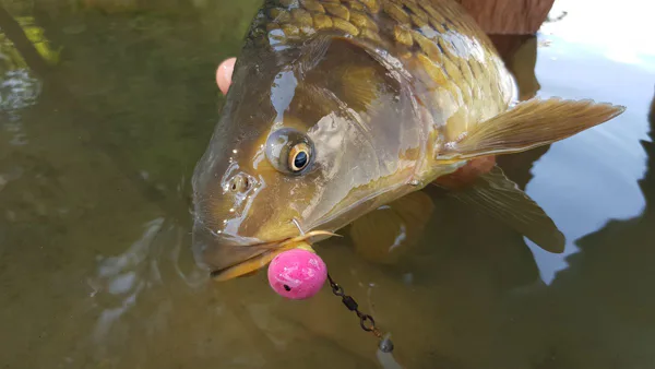 Jeden prut nahazuji do krmného místa na plovku Scopex Squid v naději rychlého záběru. Klidně i od menších ryb. Druhý prut posílám bokem do klidného místa, kde krmím pouze koulemi Giganticy. Ke dnu padla montáž z krátkého Fluorocarbonu - 25 lb v kombinaci Gladiátor vel.6 a jak jinak Gigantica 24mm + 18mm pop up, přikrmil jsem dvě hrsti koulí ve 21 mm. V pátek se mi povedli pouze dva menší kapříci do 60 cm, které jsem vyháčkoval před podběrákem, abych je netrápil zbytečným vyndaváním na břeh.