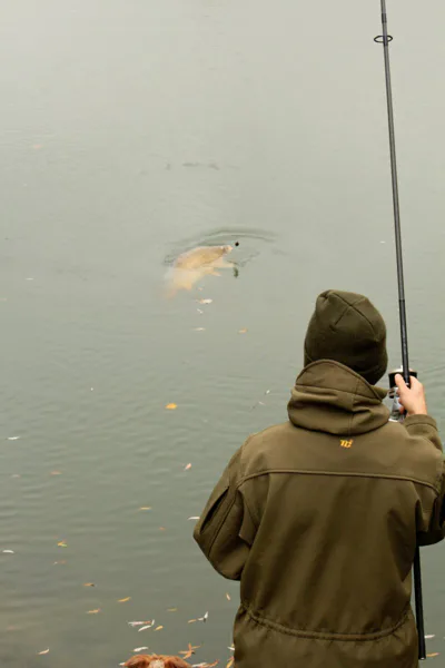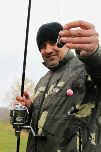 Skoro ráno, pri šálke ranného čaju Petrovi hlásim, „že som vlastne na tejto vode nikdy nechytil rybu nad 10kg a mám pocit, že ich tu ani veľa nebude“. Doteraz nezabudnem náš výraz v tvári, keď sa presne po dokončení tejto vety ozval môj pravý prút. Pomalý ťah dával tušiť, že na konci nebude malý súper. Akoby tento statný šupináč počul náš rozhovor a na truc ma prišiel presvedčiť o tom, že som sa mýlil. Keď som následne Petrovi ukazoval náväzec, na ktorý tento kapor zabral, neveril vlastným očiam. Vyosený longshank a malá popka. Iba toľko bolo treba pre úspešný zásek. I pre to túto montáž nazval WTF rig.
