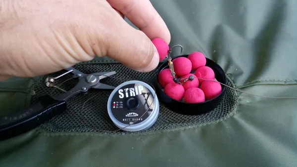 Konečně pátek! Zbývalo už jen dojed domů z práce, vše naložit, po cestě koupit zásoby potravin na víkend k vodě a tradááá….je zase trochu poškádlit. Teplota se pohybovala kolem 30 stupňů a celý víkend mělo být bezvětří, což není pro lov kaprů moc ideální. Proto tentokrát beru 20kg řepky, která bude spolehlivě padat přesně do místa, kde bude ležet chytlavá montáž ,, Ronnie Rig', na kterou použiji šňůrku Strip-X, háček volím od Carp’R’US - Gladiátor vel.6, nástrahy pop up -18mm Gigantica a Scopex Squid , které jsem zakápl esencemi ve stejných příchutí. Krmné místo rozkrmuji Spombem zhruba na 100 metrech řepkou a boiliesem, který volím ve dvou masovkách – Giganticu a Noční Můru.