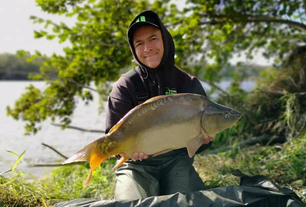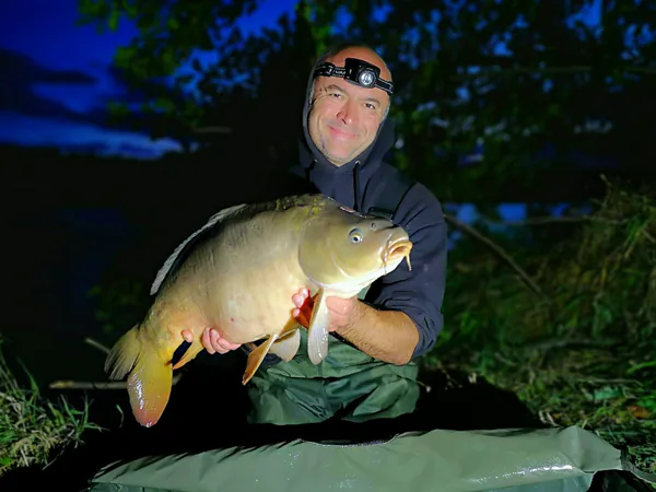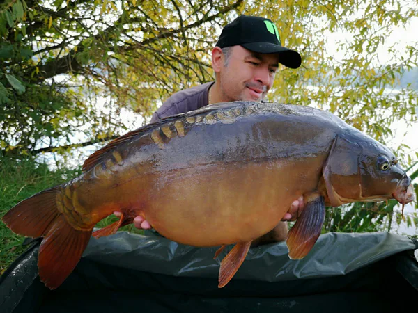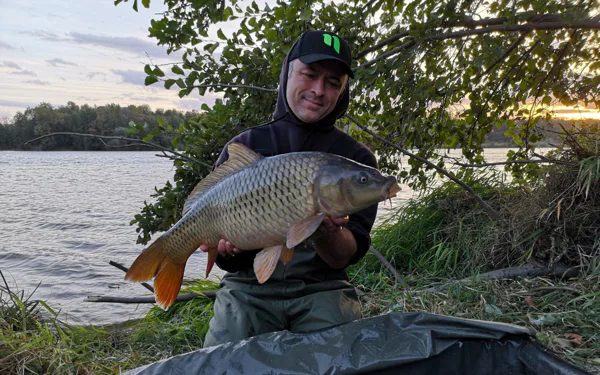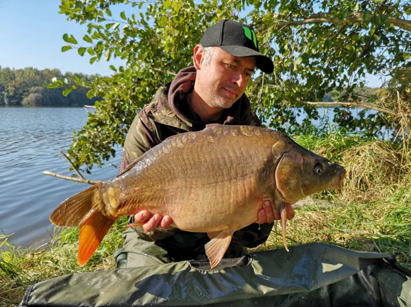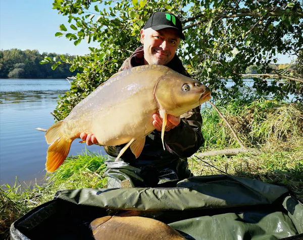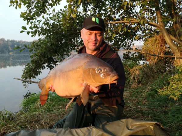 Záběrů postupně jen přibývalo a já se postupně dostávám od menších kaprů až na ryby do 14 kg. Poslední ráno dostávám záběr od sumce a po krásném souboji po podebrání se naposledy rozjíždí i druhý prut. K podebrání mi musela tentokrát posloužit podložka. Nic jsem neuspěchal a vše se povedlo, krásný lysec na váze 15,4kg.