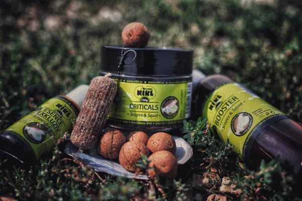 Taktiež som mal jasno v tom čo pôjde pod háčik. Na jeden prút pripravovaná novinka na budúci rok a to 2 x 24mm a na druhy Skopex & Squid 21 mm a pop up tej istej príchute 14mm. Ako kŕmenie som použil peletový mix ktorý som zalial CLS Skopex & Squid.