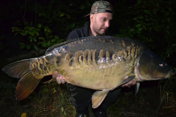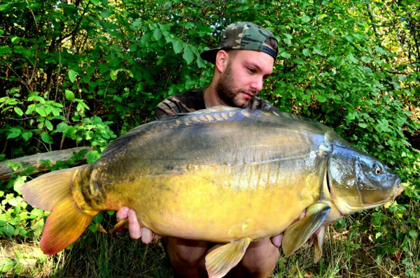Dal jsem si záležet s hledáním místa ve vodě a postupem času se ukázalo, že se to vyplatilo. Až několik dní později jsem na háčku vytáhl patentku, což mě utvrdilo, že to nebude špatný flek. Celkově se mi povedlo mnoho kaprů mezi 8-12kg, pár kaprů kolem 14kg a neskutečného řádkáče 94cm 17,5kg, kterému zachutnala jedna kulička krilla. Ryba ve skvělé kondici, tahal mě dlouhou dobu na člunu a i přes kotvičkování z vázky jsem ho nakonec dostal. Šupiny 10cm vysoké jsou opravdu k povšimnutí.