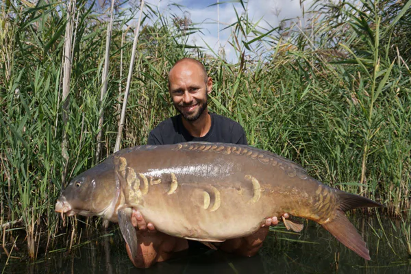 Po pomalém záběru a adrenalinovém souboji podebírám mohutného lysce. Vůbec jsme netušili kolik váží. Netroufali jsme si odhadovat. O to víc jsem byl já i Martin překvapený, když váha ukázala čistých 26kg! Neuvěřitelný zážitek. Při téhle výpravě jsme nachytali sice spoustu krásných kaprů, ale na tohohle se nezapomíná. Tak zase za rok...