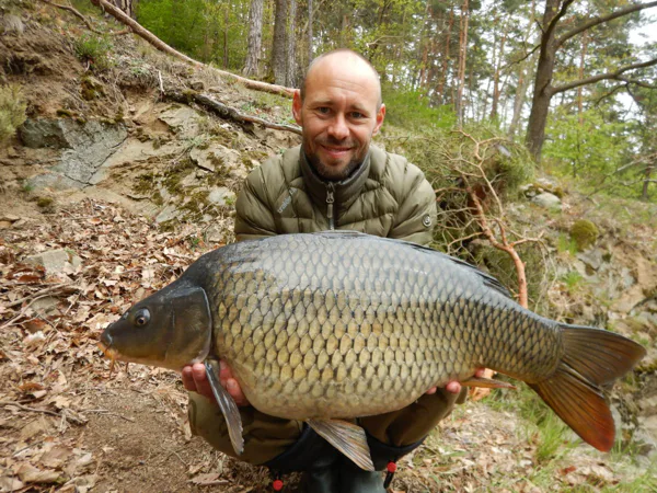 Dvacet hodin po zakrmení začíná místo krásně fungovat. Tahám prvního desetikilového kapra, což na první rybu není špatné. Během následujícího dne vytahuji dalších pět kaprů, z toho nejtěžší má 14 kilogramů. Tenhle už mi udělal velkou radost. Bohužel v půlce výpravy se kazí počasí. Teplota vzduchu padá z 18ti stupňů na 8 a to už je velký skok. V noci byla dokonce i nula. Takové prudké ochlazení tady není vůbec dobré. I voda se ochladila na 11,5 stupně. Aby toho nebylo málo, tak hladina přehrady také prudce klesá. Záběry úplně upadly a mně nezbývá nic jiného, než čekat. Přeci to v půlce nevzdám. Bohužel tohle asi svědčí jesenům a začali docela brát. Bylo to otravné. Za celý den jich nebyl problém vytáhnout dvacet. Člověk se musí obrnit velkou trpělivostí. Já jsem to nakonec vydržel a vyplatilo se. Výprava se blížila ke konci a začalo se konečně oteplovat. Hlásič pípnul, swinger se přilepil k prutu a já už tušil větší rybu. Podebírám krásného šupináče s váhou 15 kilo. Teď jsem spokojený a mohu zase v klidu na chvíli odjet domů. Poslední dva dny jsem vytáhl ještě pár ryb od deseti do třinácti kilogramů. Další výpravu na přehradu mám již naplánovanou, tak se budu těšit.