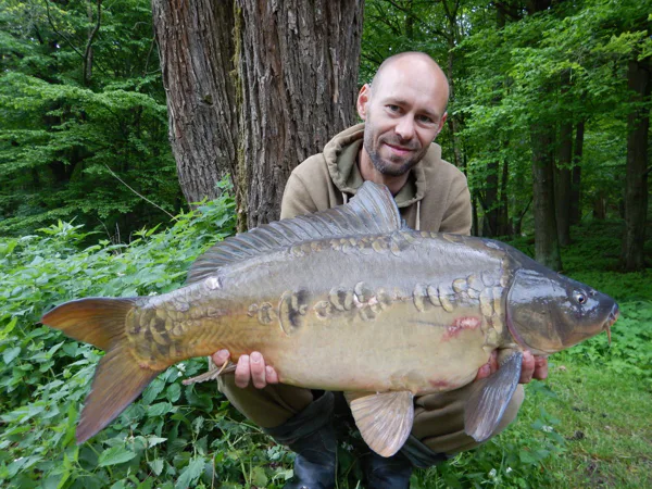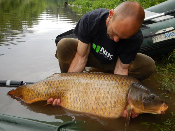 Zaberu ještě víc a najednou vidím to monstrum, pomalu mi to začíná docházet. Na tenhle okamžik jsem čekal tak dlouho, a věděl jsem, že to jednou přijde. Jeden z těch největších kaprů této vody měří 108 centimetrů, který zabral na Giganticu! Asi si dovedete představit ty pocity, když takového kapra máte v rukách. To nadšení se nedá popsat. Samozřejmě jsme to večer pořádně oslavili a zapili a doufám, že si podobného šupíka brzo zase vytáhnu.