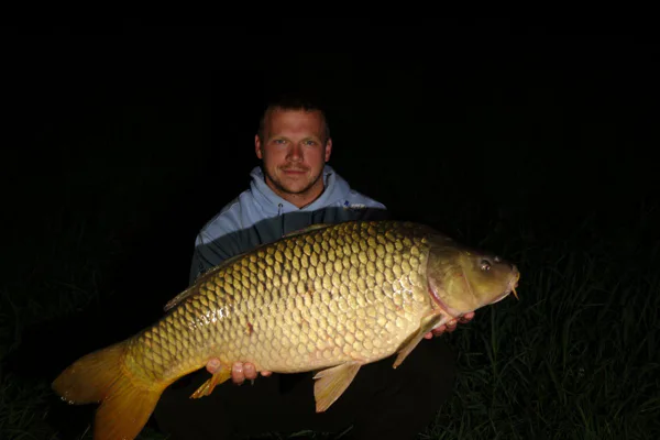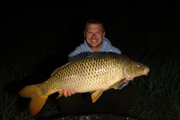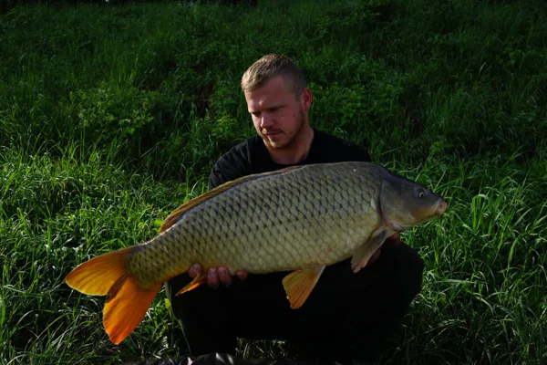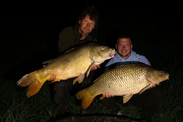 Jeden prut do krmení s 24mm koulí, druhý 20-30 metrů pod krmné místo criticalkou, nebo panáčka. Tentokrát jsem vzal na ryby i taťku, který se pokusil potrápit sumce, ale jeden prut nahodil jen tak naslepo s 15mm Krilberry a k tomu hodil dvě hrstičky kuliček. První záběr dostává táta v 23:00 a po krátkém boji podebírá nádherného lysce. Sotva ho podeberu, roztáčí se mi cívka prutu šílenou rychlostí a cítím slušného kapra. Společná radost je velká. Vždycky jsem si přál vyfotit dabla velkých kaprů a o to cennější je , že to vyšlo právě s tátou. Jeho lysec vážil 12,1 kg můj šupík 11,6 kg. O půlnoci táta balí, já zůstávám. Hned po čtvrté hodině mám záběr. Dlouhého osmdesátníka ani nevážím. Hodinu na to se opakuje podobná akce, tentokrát 8,8 kg šupík. Po osmé hodině se pomalu chystám k odchodu a opět se roztáčí cívka. Opět velký souboj a na jeho konci krásný 89 cm dlouhý šupík s váhou 11,3 kg. Zase se mi za pár hodin lovu podařilo vytěžit maximum a dosáhnul jsem 4 záběrů. Snad budou ryby v podobném duchu pokračovat a brzo se přihlásím s další zprávou.