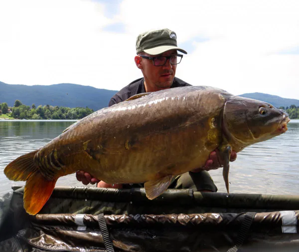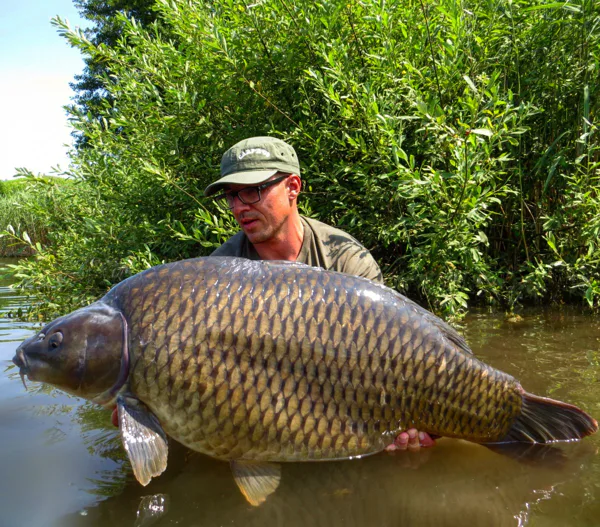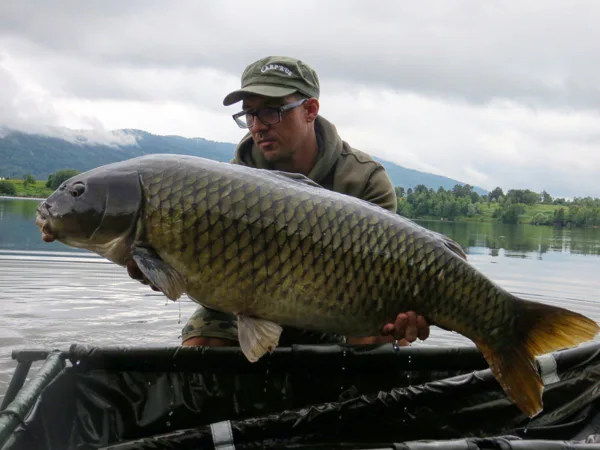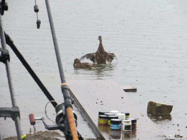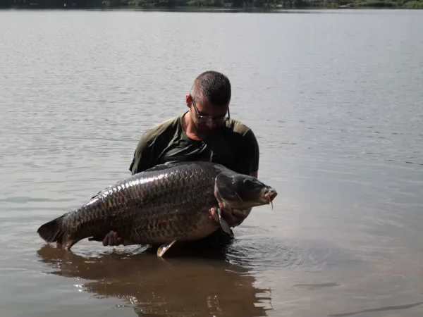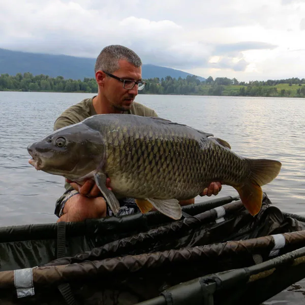 V první chvíli po podebrání jsem si myslel, že jde opět o toho samého šupíka, ale váha ukázala že jsem se pletl. Tenhle pašík o váze 21kg mě naplnil důvěrou a pocitem, že tohle nebude konec. Další den jsem se opět bavil lovem menších ryb a neustále přikrmoval dalšími a dalšími kilogramy 68ky. Věděl jsem, že takováhle aktivita musí zaujat i ty největší kapry. Lehký déšť prokysličil vodu a já věřil že další série záběrů na sebe nenechá dlouho čekat. A taky že ne. Z lehkého rozjímání mě vytrhla jízda na oba pruty. Jeden prut v ruce, druhý mezi koleny a já komicky v polo dopředu snažíc se zdolat oba kapry. Bohužel mi jeden po malé chvíli padá u břehu a druhý těsně před podběrákem. Na mé štěstí jsem dostal druhou šanci ve chvíli, kdy se u mně zastavuje náhodný kolemjdoucí. Razantní jízda na oba pruty nás oba překvapuje a s jeho pomocí se mi daří zdolat dva opravdové klenoty o váze 19 a 28,6kg.