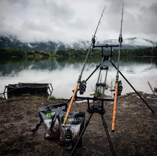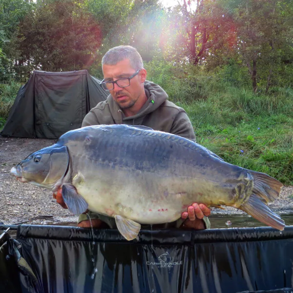 Svoje montáže jsem následně nahodil jak do hloubky tak do svažující se mělčiny. Návazce osazené Criticalskami a panáčkem s bílou plovkou 68 pod Centurionom ATS č.2 a dlouhým mouthsnaggerem byli připraveny na záběr. Taktika fungovala víc než skvěle a již v první den jsem dostal do podběráku bez mála 20 ryb. Všichni kapři byli krásně zdravý a při síle. Ale nebyli to žádní místní mohykáni. Lehká změna taktiky a masivní zákrm do mělčiny ale rychle změnil pravidla hry. Malý kapři se přesunuli z hloubky do mělkých partií, kde se spolehlivě krmili na 24mm 68ce. Montáže v hloubce tak zůstali bez krmení, čekajíc na větší rybu. Rozruch vyvolaný menšími rybami na mělčině a občas zkutálená kulička v hloubce fungovali jako pozvánka pro pořádné ryby a po několika hodinách čekání mi moje úsilí začalo přinášet ovoce. První vlašťovkou byl luxusní šupík kolem 18kg. Zhruba hodinu od jeho puštění jsem si všil že se můj prut divně prohýbá na hrazdě. A nebylo se čemu divit. V tom všem spěchu jsem zapomněl zapnout hlásič, který by teď zaznamenal záběr.