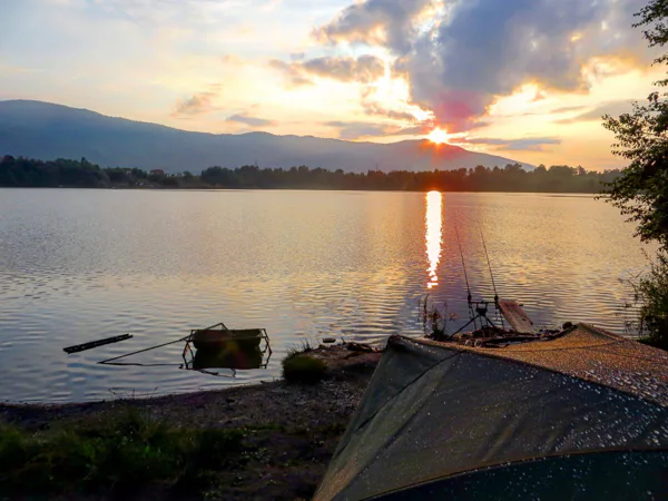 Vzhledem k tomu, že jsem měl na lov poměrně dost času, nespěchal jsem. Krátké rozhovory s místními rybáři, které jsem znal ještě jako malý kluk, mi napověděli, do kterých částí jezera bych se měl ubírat. Moje rozhodnutí nakonec potvrdilo i několik kaprů, kteří jakoby se přede mnou chtěli svými výskoky ukázat v celé kráse. Pro tenhle lov jsem měl vymyšlenou úplně jinou taktiku, než obvykle. Z mělké zátoky, v které nebylo víc než metr a půl vody se dno rychle svažovalo až do zhruba desíti metrů. Právě tento tvrdý svah byl místem, kde kapři vyjížděli z mělčin pro krmení. Rozhodl jsem se pro tento krát použít jenom předmočené boilies 68, které jsem na lovné místo dopravil pomocí kobry Carbon Sky Sword MKII. Na první zákrm jsem do prostoru rozkrmil zhruba 10 kg kuliček. Cílem bylo pokrýt jak mělkou část, ve které kapři narazí na několik atraktivních kuliček, tak i hloubku, do které se při troše štěstí přijdou krmit.