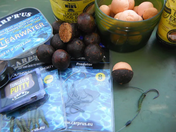 Nadväzec som používal kombinovaný z florocarbonu Clearwather 25lb a 25lb šnúrky Smouth z háčikom Predator. Nástrahu som používal jednu polku dipovanej potápajúcej a druhú polku plávajúcej boilies v esencii Scopex-Squid. Nie každú vychádzku sa my podarilo spraviť záber ale boli aj úspešnejšie noci a únava na druhý deň v práci nebola úplne zbytočná. Za každého kapra som bol nadmieru spokojný a zistil som , že sa na ryby oplatí ísť aj prespať, veď záber vás doma v posteli nezobudí.