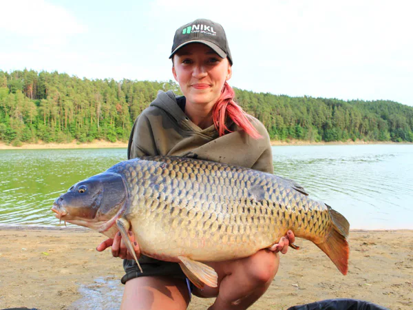 Druhý den se nám podařilo pár malých ryb. A v pátek se nám to rozjezdilo a váhy se začali zvětšovat. Mě se povedl chytit úžasný lysec s váhou 9kg. Jiřce se povedlo chytit úžasného šupináče o váze 12,3kg a zároveň to byl i náš největší kapr na Orlíku. Pár záběru přišlo i z 20metrů ovšem nejvíce záběrů bylo z 10metrové hloubky. Pan Nikl nás naučil i novou montáž s názvem Ronnie rig, kterou jsme i na podpoře úspěšně používali. Po dobu celé podpory se nám s Erikem opravdu intenzivně věnovali a snažili se nám předat co nejvíc svých zkušeností a znalostí. Díky Erikovi jsme se s Jiřkou naučili jezdit sami na člunu, používat elektromotor, ale i spalovací motor, ze kterého jsme nejdřív měli opravdový respekt.