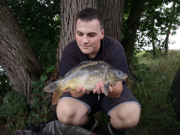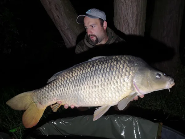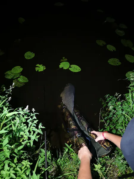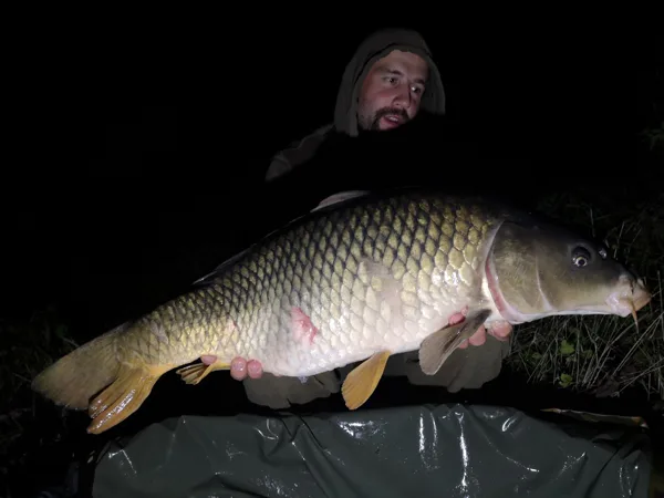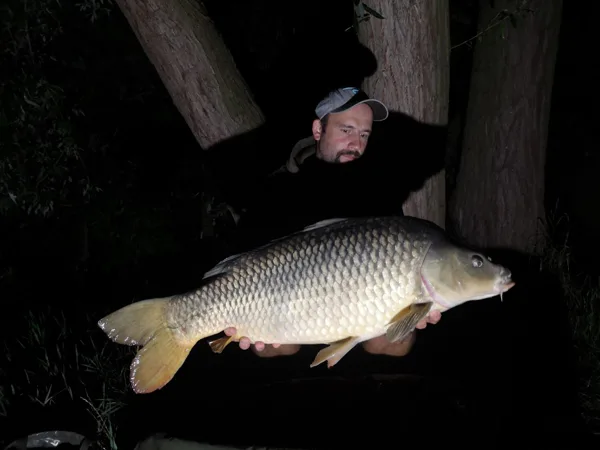 Tady se chceme zdržet dvě noci. Počasí na to, že je léto, tak je chladněji a prší. Záběry přichází až po setmění a hned je to pěkný šupík kolem 12 kg. Dokrmím zhruba půl kilem boilie. Mám sebou jen boilie gigantika a jdu si lehnout. Po chvilce přichází záběr na druhý prut. Ryba zajíždí do vázky a mě se mi ji po chvilce daří dostat ven. U břehu pak podebírám šupika a váha se zastavuje na 15 kg. Do raná už nic nepřichází a odjíždím do práce.