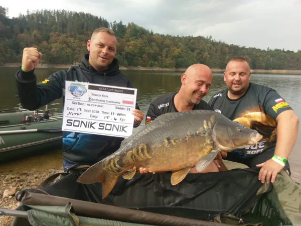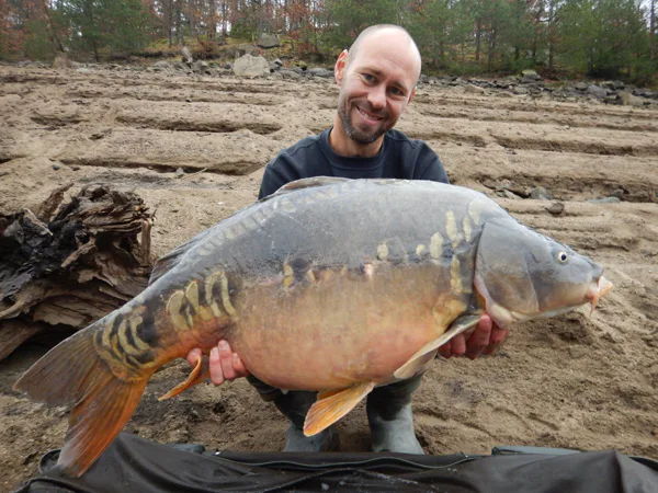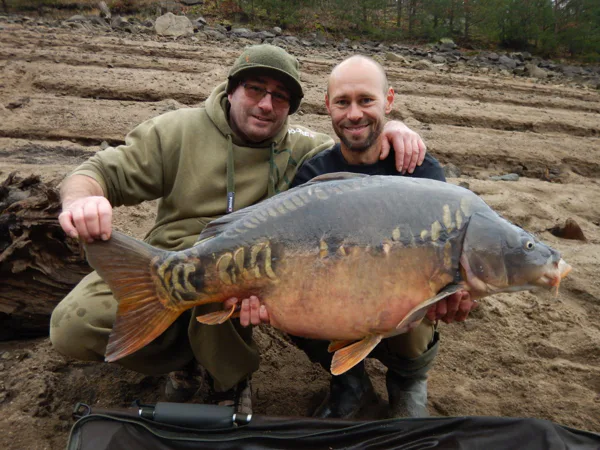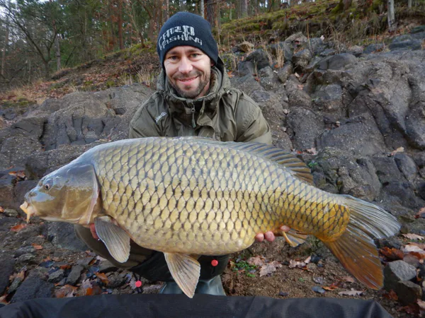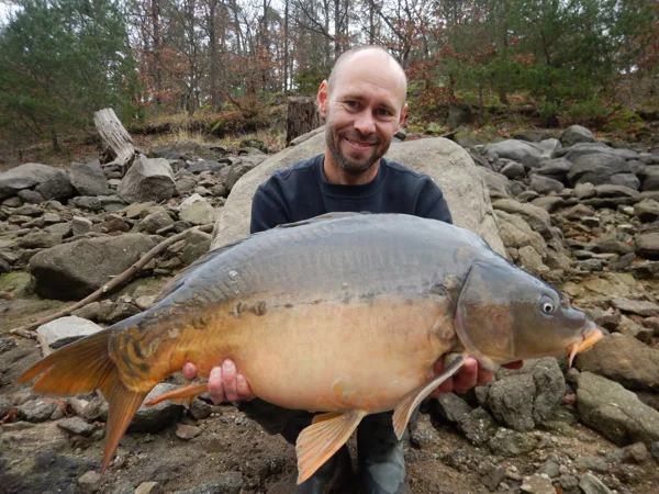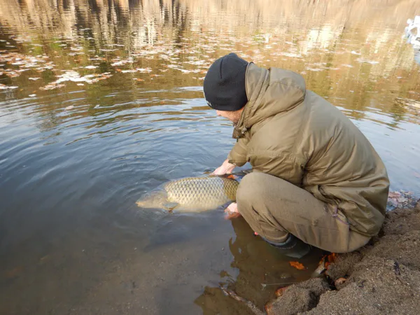 Dobré místo, jednoduchý návazec a menší množství návnady. Jako základ montáže jsem používal 15 librovou šňůrku Strip-X od firmy Carprus a můj oblíbený háček Centurion číslo 6 od stejné firmy. Před každým položením montáže do vody kontroluji ostrost háčku. Je to jedna z nejdůležitějších věcí aby jste byli úspěšní. Na každou montáž přihazuji přibližně hrst boilies. V tomto ročním období není potřeba sypat do vody hodně krmení, bylo by to spíše na škodu. Při obou prosincových výpravách jsme atakovali hranici dvaceti kilogramů, ale bohužel se vždy ručička váhy zastavila těsně pod ní. Jednoho takového kapra se nám podařilo ulovit i s kamarádem Ondrou společnými silami . Je to známý kapr, který mě udivuje, jak rychle roste a přibývá na váze. Kdybych to neměl doložené fotkami a váhou tak bych tomu asi nikdy nevěřil. V roce 2015 měla tato ryba 10 kilogramů. V roce 2018 se na Orlíku konaly závody World Carp Masters a tohoto kapra se také podařilo ulovit. Vážil 15,4 kilogramů. A teď v roce 2019 má už skoro 20 kilogramů. Neuvěřitelné.