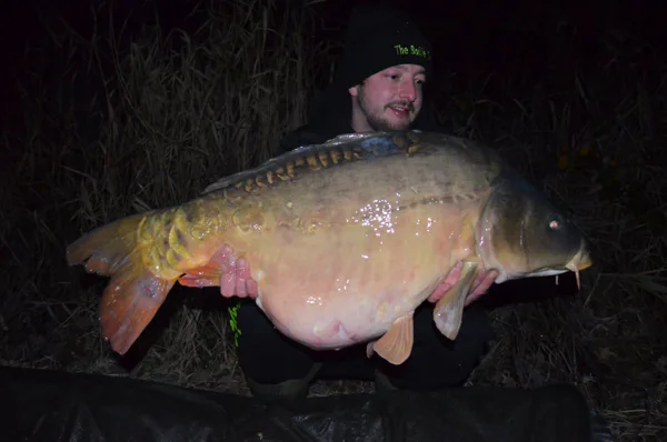 I was watching a series on Netflix when suddenly my right indicator made a few beeps followed by my swinger that dropped to the ground. I took the rod and started reeling in. It felt like my line was broken. But then suddenly i felt something on the other side, and it seemed to be a better fish. After fifteen minutes of fighting i could slide the net under this well fed mirror warrior. I look inside my net and saw that the hook was firmly in the middle of his mouth because of the long Mouthsnagger. I was over the moon and immediately called my friend to let him know about my beautiful catch.