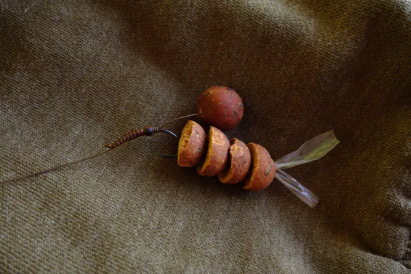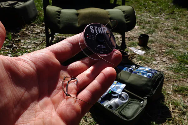 Jako montáž jsem na oba pruty použil Multirig z potahované šňůrky stripx 25lb a háčku Continental velikosti 4, kterou mě naučil právě Martin a musím říct, že funguje opravdu skvěle. O tom jsem se mohl přesvědčit ještě ten večer. Rozjel se mi prut umístěný kousek od břehu na Devill Krill. Po nádherném souboji jsem podebral kapra s atypickou tlamou ve stylu pitbulla. Poslední ráno se na mě přišlo podívat pouze několik tloušťů a jeden kapřík menší velikosti. I tak jsem si rybařinu po 14 dnech v karanténě nesmírně vychutnával.