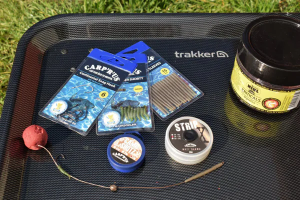 Montáž jsem používal jednoduchou, klasickou - háček Continental Snag Hook č. 6 na potahované 25Lb šňůrce Strip-X, rovnátko Mouthsnagger shorty, broček a převlek proti zamotání.