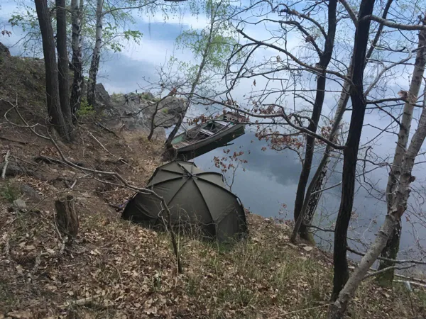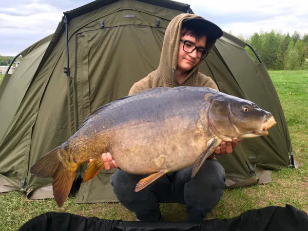 Kvůli časové vytíženosti jsem se k vodě opět dostal až v půlce května. Opět se jednalo o týdenní výpravu. Na této výpravě jsem se rozhodl krmit o něco více, přibližně tři kilogramy denně. Na místo jsem přijel v pátek okolo poledne, našel jsem oblíbený flek, zakrmil a prut umístil deset metrů od krmáku. K večeru panovalo počasí, které vím, že zde funguje. Přes den bylo zataženo a foukal silný vítr, který se k večeru uklidnil až na úplný olej a začalo se vyjasňovat. Něco bylo cítit ve vzduchu. V jedenáct hodin mě ze spacáku vytahuje razantní jízda. Beru prut, skáču do lodi a hurá za rybou. Po tří stech metrech jsem se dostal nad ní a zhruba po desetiminutovém souboji jsem na 24 mm criticals v příchuti Kill Krill a na oblíbený Blowback rig s Predátorem velikosti šest podebral nový osobák z domovské vody. Pěkně stavěný lysec s váhou čtrnáct a půl kilogramu.