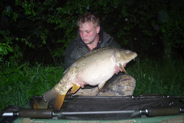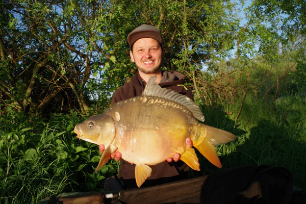 V dopoledních hodinách jsem dorazil k vodě a asi hodinu hledal nějaké místo, protože takový nátlak rybářů, jsem dlouho neviděl. Nakonec jsem byl nucen jít na opačnou stranu revíru, něž jsem chtěl jít a takřka jsem seděl pomalu v jádru krmitkářů. Klasický při příjezdu jsem se vybalil, postavil bivak, nachystal pruty a šel krmit, jelikož sem věděl na jaké vzdálenosti mám chytat, tak jsem hned spomb odměřil a zaklipoval na 105m, Krmil jsem mnou hodně oblíbeným boilie 68, bez kterého dnes k vodě nejdu, k tomu jsem měl nachystaný i tygří ořech, nakrmil jsem asi cca 3kg a poté jsem nachystal pruty tak že jeden šel přímo do krmného místa a druhý asi 10metrtu za krmné místo. Prvni dny sem chytal menší kapry a záběru jsem udělal celkem dost. Za 2 dny přijel kamarád Číža a taky sním i změna počasí, silný vítr a déšť. Tak jsme věřili že to ryby ještě více donutí k záběrům, denně jsme krmili asi ty 3 kg a kaprům opravdu chutnalo. Třetí den večer se nám povedl i jeden lyscovy double a Čížovi jeden pěkný šupináč. Bohužel nám přestala fungovat váha, tak jsme mohli jenom tipovat, ale nám to vůbec nevadilo. Poslední den bohužel jsme přišli i o pěknější kapry, ale jednoho se mi taky podařilo vylovit. Musím podotknout, že většina záběru byla na boilie 68 ve 24 mm, namočený v boosteru. Ještě jsme se s Čížou rozhodli že zůstaneme do půl noci a doufali že ještě nějaký větší kapr přijde. Záběry jsme měli, ale zase od menších kapru. Tuto výpravu jsme si hodně užili a už se těšíme, jak nám v práci zase dají volno a my budeme moc jet na ryby.