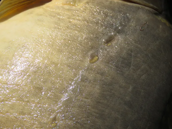 Jako nástrahu jsem zvolil boilies Criticals 68 24mm zakáplé esencí, ke kteréme jsem nakobroval pouze hrst boilies. Druhou variantu v podobě MGS jsem umístil na nejmělčí partii dna mezi vázky v podobě stromů a na začátek rozrmil 2kg boilies. Během prvního dne se mě podařilo zdolat pár kaprů do 10KG. Vše bylo chyceno na MGS z mělké vody. Nastražená criticalska 68 po vytažení z vody,nejevila sebemenší okousání od menších ryb. Pro sobotní lov jsem nehodlal nic měnit a pevně jsem věřil, že ta správná ryba příjde z hlubší vody právě na ,68, Od brzkých ranních hodin slunce ukazovalo svou sílu. Do 12:00 jsem udělal další tři ryby na MGS, kterým vévodil 13kg šupík. Druhý prut stále mlčel.Přikobroval jsem k němu opět pouze hrst boilie. Zhruba hodinku po poledni se ozvalo jedno pípnutí na prut z hluší vody.Zpozorněl jsem a čekal co bude dál.
