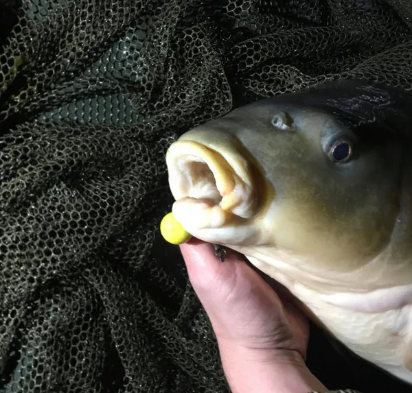 Svou menší výpravu jsem podnikl pouze na jednu noc z neděle na pondělí. To zrovna hlásili bouřky a silný vítr, takže jsem velice neváhal a u vody jsem si sedl na návětrnou stranu. Břeh, na kterém jsem seděl, byl větrem atakovaný už zhruba 4 dny v kuse a to bylo poznat již po příjezdu k vodě. Stačilo jen 5 minut pozorovat hladinu a člověk pomalu nechápal, co za ryby a v jakém počtu se zdržovali pouhých 50 metrů od břehu. Nezahálel jsem tedy a zkusil jsem nastražit na svůj první prut plovoucí boilie Devill Krill o průměru 18mm na montáž Ronnie Rig, která mi zde přináší lepší úspěchy již delší dobu a na druhý prut jsem vyzkoušel criticalsku Scopex & Squid o průměru 24mm. Háčky jsem volil raději větší velikosti, protože ve vodě místy rostou vysoké řasy a já nechtěl o rybu zbytečně přijít a nebo ji nějakým způsobem ,,poranit‘‘ a to například vyříznutím háčku z tlamky, kdyby náhodou do řas zajela.