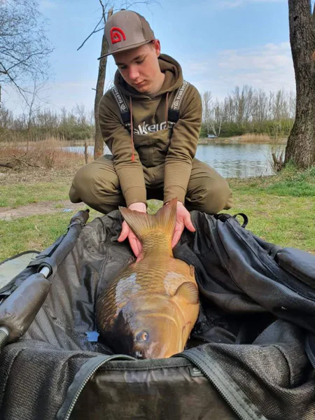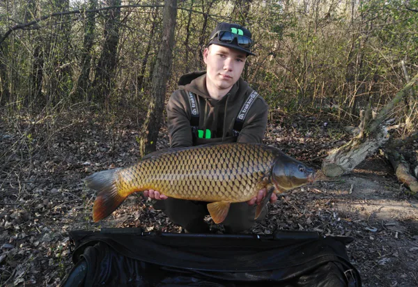 Rozhodnutie padlo na menšie štrkovisko kde sa voda skoršie prehreje a ulovenie ryby bude o niečo jednoduchšie. Na túto výpravu som siahol po Devillovi s ktorým mám v chladnej vode úžasné výsledky. A ani tento krát tomu nebolo inak. Po príchode na jednu udicu dávam montáž s ronie rig jednou 14 mm guličku očakávajúci rýchly záber a ten sa vážne dostavil. V podložke mi skončila prvá ryba výpravy. Menší šupináč ktorý mi priniesol úsmev na tvári. „Veď prvá ryba sa chytá najťažšie“. Rozhodol som sa kŕmiť väčším množstvom boilies, čo mi uľahčila kobra Sky Sword MKII.