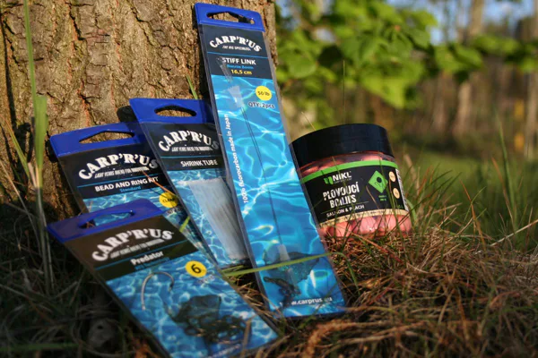 V poslední době jsem si velmi oblíbil návazce Ronnie rig. Jeho navázání je vcelku snadné a rychlé, ale já používám hotové fluorocarbony Ronnie boom, které mi celý proces ještě zjednoduší. Do očka obratlíku pouze stačí navléknout háček a zajistit smršťovací hadičkou. Potom už stačí na háček navléct malý obratlíček s kroužkem, který zajistíte zarážkou a máte hotovo. Po případě si můžete ještě návazec dovážit kouskem plastického olova.