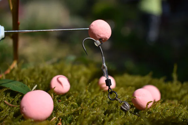 Poté, co jsem se naučil toto boilie správně nastražovat jsem si vzpomněl na Karlova slova. Opravdu je toto boilie při správné prezentaci mnohdy ta nejúčinnější zbraň na kapry. Různých nastražení je mnoho. Zásadní věc ale zůstává stejná – kulička MUSÍ být umístěna blízko háčku. Další velmi podstatnou věcí je velikost a ostrost háčku. Kvůli tomu, že se kulička nachází v těsné blízkosti háčku, je lepší používat větší velikosti (ke 14mm kuličce klidně háček velikosti 6 nebo 4). Jako hlavní výhodu plovoucího boilie vidím fakt, že je díky svému postavení ve vodním sloupci a mnohdy velmi výrazné barvě schopné vyprovokovat i letargickou rybu, která nutně nemusí chtít přijímat potravu. Tuto malou kuličku sezobne hlavně tedy ze zajímavosti.