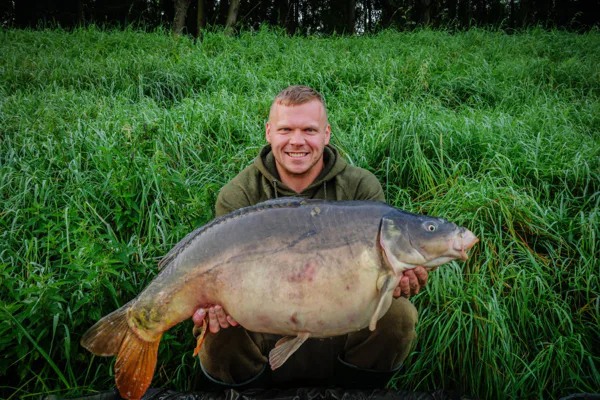 Koncem týdne hlásili ochlazení takže jsem měl šanci zachytat 1-2 večery. V pondělí roz krmuji místo dvouma kilama Scopex-Squidu. Druhý den po práci přijíždím a začínám lovit. Do půlnoci se nic nestalo. Ve čtyři hodiny nahazuji pruty a uléhám. V půl šesté mě budí divoká jízda. Hned po zvednutí prutu jde cítit slušnější ryba. Když ji poprvé uvidím na hladině roztřesou se mi kolena, ale to ještě nevím, že kapr chytne druhou mízu a bude podnikat nekonečné výpady kolem říční navigace plné ostrých kamenů! Díky bohu všechno dobře dopadlo. Clearwater Fluorocarbon Mainline 0,39mm obstál v téhle zkoušce na jedničku. Continental vel. 4 s dlouhým rovnátkem na šňůrce StripX seděl přesně tak jak má a já můžu nevěřícně koukat do podběráku jako tele na nové vrata!!! Po převážení zjišťuji, že se jedná o můj nový říční osobák z téhle malé řeky. Kapr váží rovných 17kg a sebral si dipovaný Scopex-Squid 24mm. V 8 hodin balím pruty a odjíždím spokojený do práce. Večer už opět netrpělivě přešlapuji na břehu. Díky citelnému ochlazení a ledovému severáku nedávám místu už moc naděje, ale nezkusíš nevíš. Bohužel celou noc neslyším žádný náznak kapří aktivity a ráno před odchodem do práce dostávám dva záběry od tloušťů. I tak dopadla tahle dvounočka nad očekávaní a já vyrážím dál hledat kde by se ryby mohli na zimu krmit.