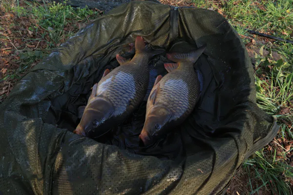 Se západem slunce posílám montáže na svá místa a sleduji hladinu, která se hemží aktivitou. Místy se ukáže i kapřík. Nevypadá to sice na velké kusy, ale z prvu chci dostat kontakt s jakoukoliv rybou. V jedenáct večer začalo jemně poprchávat a rybám to svědčilo. Chvilku po začátku deštíku přišel první záběr. Malá ryba, která si vzala 21mm criticals DevillKrill. Chvilku po nahození dostávám druhý záběr od ryby podobné velikosti, ale nevadí mi to, protože tak dostávám informaci že se ryba na místě začína krmit. Ráno posílám pruty do vody a přikrmuji dvě hrsti boilies. Okolo šesté ráno mám záběr na 24mm criticals KillKrill. Na konci je opět menší ryba za to ale krásná. Při focení dostávám záběr i na druhý prut a vytahuji rybu uplně stejnou jako je ryba v podložce jen o něco větší.
