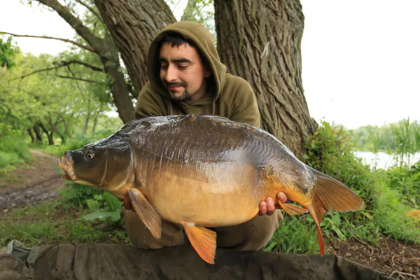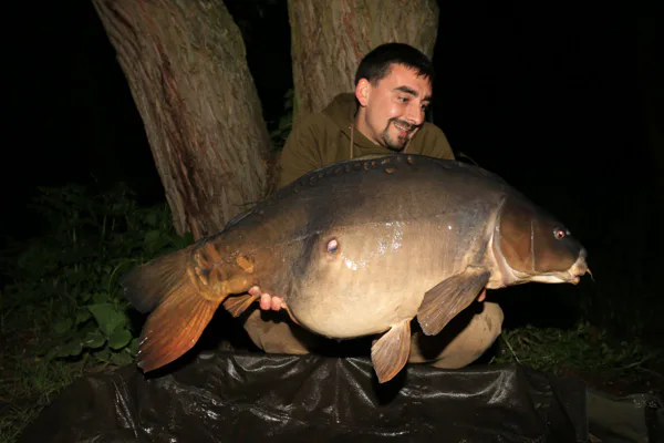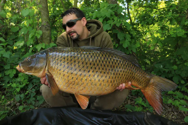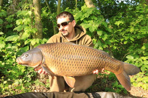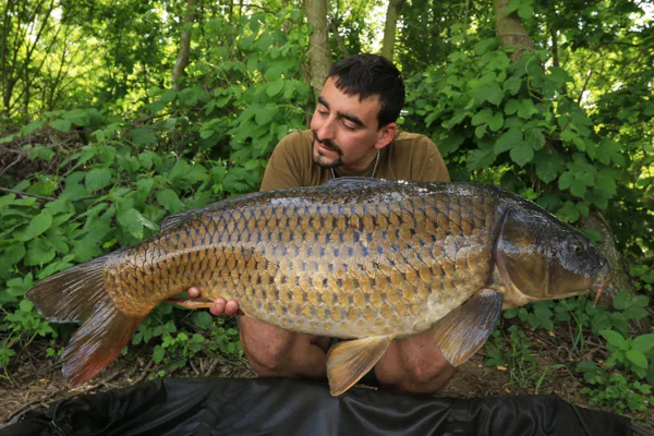 V hlavě jsem si říkal, že je něco špatně, ale netušil jsem co, protože všude jinde na vodách nemám problém s tím, že by mi ryba spadla z Combi návazce. Bylo na čase udělat změnu, protože ztratit dvě slušné ryby za sebou byla silná káva i na mě. Umotal jsem stejně dlouhý návazec, ale pouze z potahované šnůrky Strip-x 25lb. Ten večer jsem dostal ještě jednu šanci, která konečně dopadla podle mých představ a já se mohl vyfotit s prvním místním lyscem s váhou 17 kg, který měl nezaměnitelnou bouli na boku. Druhý den jsem se do toho hned po ránu opřel a nakrmil 10kg. Výhodou bylo malé molíčko na vodě, z kterého se dalo spombovat, nikoliv nahazovat montáž. Z mola byl můj Hot pot na 120 m , takže dobře odhoditelná vzdálenost, ale na nahazování mých montáží né moc ideální. Molo bylo úzké a hlavně jsem měl obavy o zachycení háčku o fošny, které byly za molíčkem. Montáž s háčkem přesně odpovídala zachycení v hodu, což by mohlo mít fatální následky pro prut. Proto jsem raději zvolil odhoz ze břehu ač na větší vzdálenost, ale s klidnou hlavou. Hodinu po naspombování začal šílený kolotoč záběrů, který neměl konce. V ten den jsem chytl přes 60 kaprů, ale jednalo se o ryby v rozmezí 9-11kg. Brutální den mě tak vyšťavil, že jsem v 22:00 vytáhl pruty a šel spát. Třetí den byl jako přes kopírák. Bylo velmi težké udělat záběr od větší ryby, protože se k tomu nestihly dostat. Okolo  oběda se kolotoč trochu zklidnil a já si mohl cvaknout další pěknou rybu, šupináče nad 15kg.