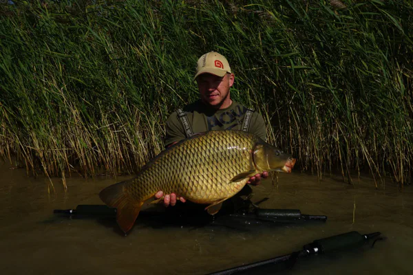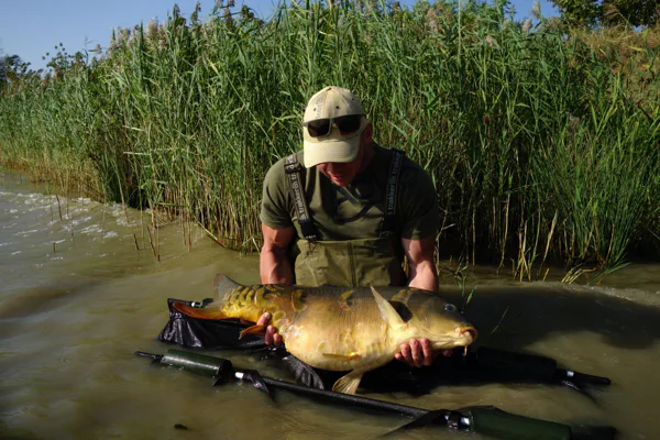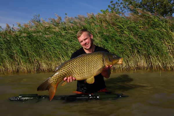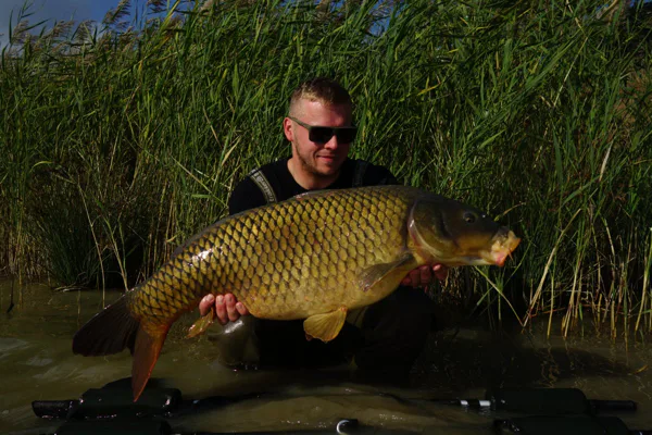 Přibližně po třech hodinách se rozjíždí prut s dvěma 18mm kuličkama Kill krillu criticals. Na konci čeká překvapení v podobě 11,3 kg těžkého šupíka. Úžasný start, poprvé na této vodě a po třech hodinách ryba 10 kg+. Do večera mám na kontě 8 záběrů od kaprů 60 - 75 cm. Úterý začíná velice dobře. Od rána chodí záběry a během dopoledne mám na kontě kapra 10 kg. Opravdová třešnička na dortu, ale přichází okolo druhé hodiny odpoledne, kdy zdolávám nádherného lysce s váhou 14 kg, který je opravdovým klenotem této vody.