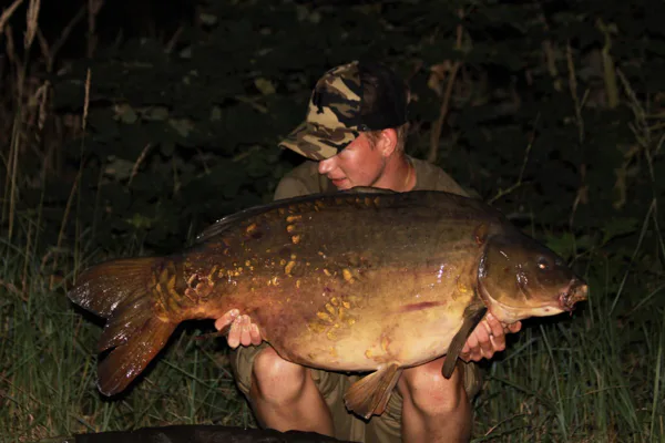 Nakonec jsme našli menší lavici, která stoupala ze 7 na 5,5 metrů. Táhnula se cca 7 metrů a na její konec jsme se rozhodli umístit tyčovku. Na ní jsme se rozhodli umístit montáže a doufali že ryby přijedou sbírat na pískovou čistou lavici. Jeden prut jsem umístil úplně nejvýše s jednou plovkou ananasu a zasypal partiklem. Druhý prut jsem umístil těsně na patu s Criticals 68. První záběr přichází na plovoucí boilies. Byl to zhruba pětikilový kapr. Položím montáž znovu a přibližně za dvě hodiny , přišel krásný amur o váze 16kg. Těsně před půlnocí se mi rozjel prut na panáčka a na konci brutální lysec s váhou 23,20 kg, který je můj nový osobák. Neskutečný souboj, tahal mě po vodě přes 30 minut v siném dešti. Takže hned první den neskutečná ryba a záběry dále pokračovaly celou výpravu. 68 opět ukázala svoji sílu a přinesla další neskutečné ryby. 18,40 kg, 17 kg , 19,20 kg a spousta kaprů do 13 kg. Tahle výprava se fakt povedla a budu na ni dlouho vzpomínat.