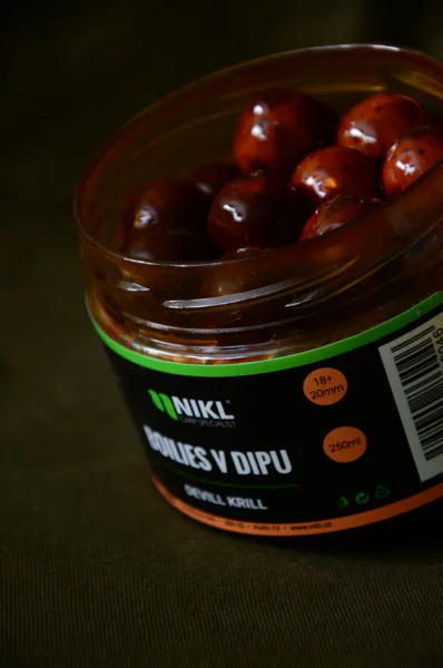 Na výpravu, na kterou jsem se chystal, nebyla ničím zvláštním a tak jsem vezl pouze to nejnutnější a nedělal si ani moc starosti s návnadou i nástrahou. Po příjezdu k vodě jsem rychle připravil základní tábor a hned poté se soustředil na udice, které jsem chtěl mít co nejdříve nahozené. Nikam jsem ale nepospíchal, protože jsem očekával, že pískovna, na které jsem chytal, mi vydá své úlovky pouze buď v dopoledních, nebo odpoledních hodinách. Nejprve jsem tedy řešil otázku nástrahy a teprve ve chvíli, kdy byly montáže ve vodě, začal jsem řešit otázku návnady. Nástrahy jsem si logicky rozdělil, abych zjistil, co bude kaprům více chutnat. Tak jako tak jsem vsadil vše na jednu kartu, respektivě příchuť. Rozdíl byl pouze v druhu. Pod háček jsem dal na jeden prut boilies v dipu v příchuti Devill Krill. Jde o velmi atraktivní nástrahu, která dokáže rychle zaujmout pozornost, proto se stala favoritem této podzimní výpravy.