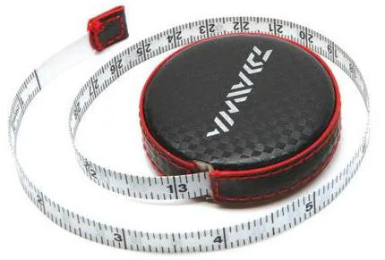 Navíjecí metr se zarážkou, který měří v centimetrech i v palcích.