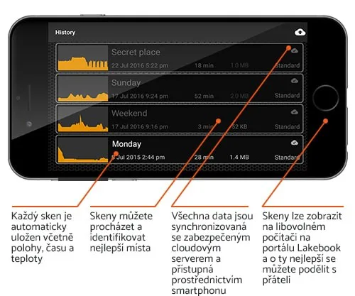 - Okamžité zjištění hloubky a automatické upravení měřítka
