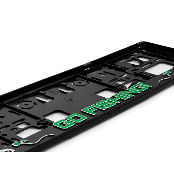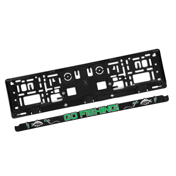 Je vyroben z odolného plastu, na kterém se vyjímá rybářský motiv. Díky standardním rozměrům bez problémů pasuje na většinu aut a spolehlivě udrží poznávací značku na svém místě.