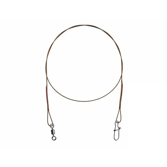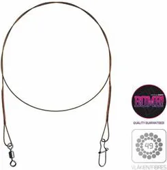 Ocelové lanko, které je zhotovené pletením 49 vláken (označovaných také jako 7×7) z nerezové ocele, opatřené obratlíkem a karabinkou.