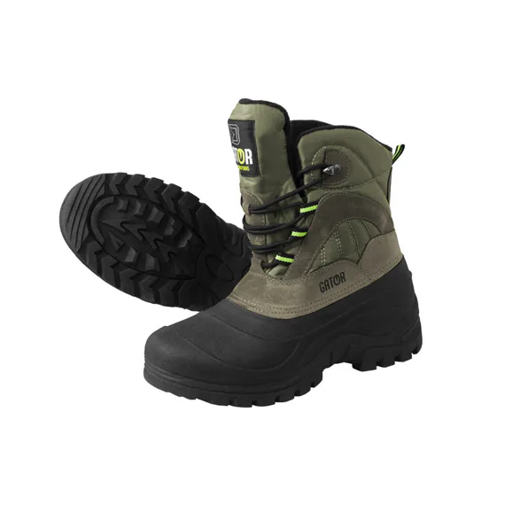 Zvýšený gumový lem podrážky sahá až do výšky kotníků, to znamená, že chůze v loužích, rozbředlém sněhu a blátě není pro boty GATOR problém. Tato pryžová část se navíc velmi dobře čistí. V zadní části gumové části boty se nachází výstupek, díky kterému si botu bez problémů zujete.
