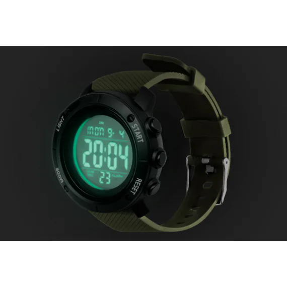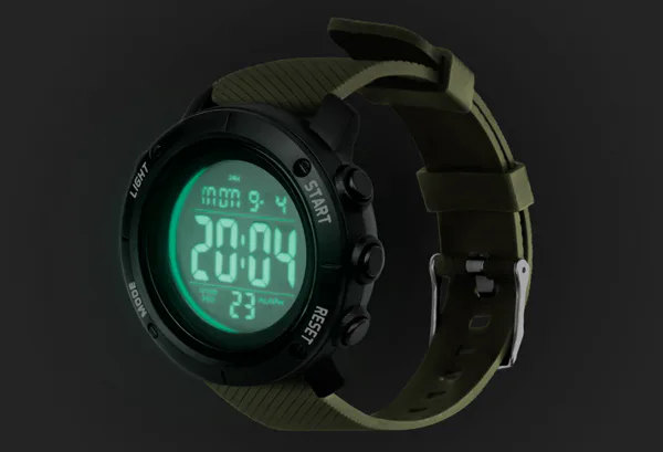 Digitální hodinky ve sportovním designu se spoustou funkcí.