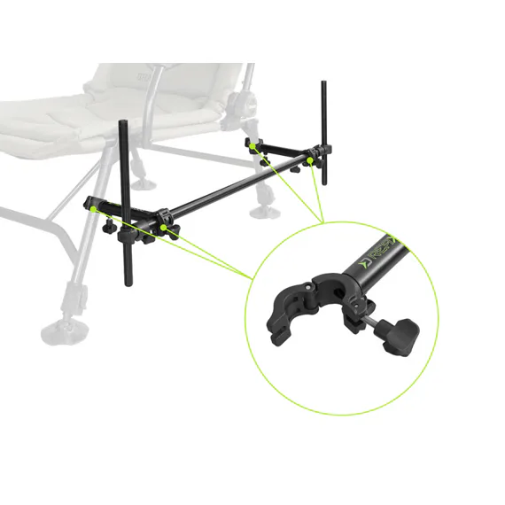 Extra lehký, důmyslně propracovaný a maximálně univerzální držák feederových prutů, který je určený pro připevnění na většinu rybářských křesel.