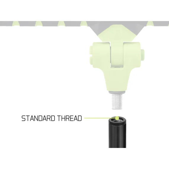 - na obou koncích jsou tyčky s univerzálním závitem pro připevnění různých feederových držáků na pruty