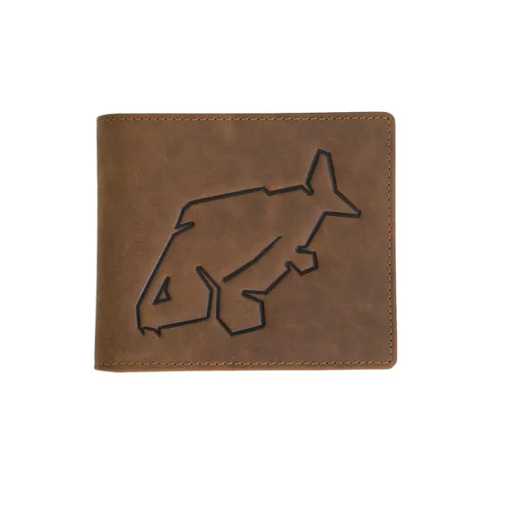 Kožená peněženka s několika přihrádkami a originálním motivem kapra pro bezpečné uchování dokladů a hotovosti.