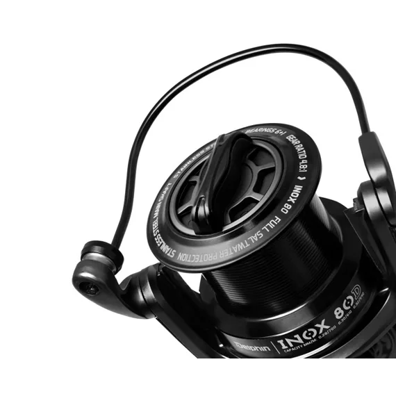 Inox je kaprový naviják, který hned na první pohled zaujme svým tmavošedým, matným provedením s lesklými černými prvky.