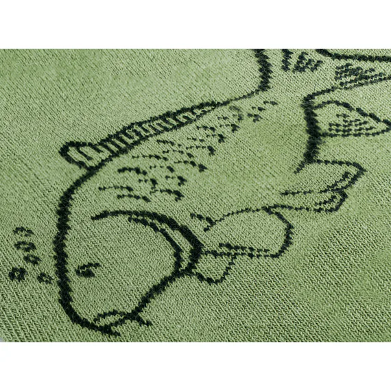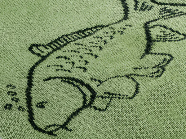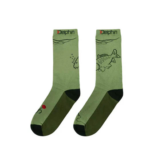 Ponožky v zelené barvě s červenými detaily, které na sobě nesou design s kaprem.