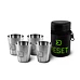 Cestovní, kompaktní a nerozbitná sada čtyř nerezových pohárků o objemu 30ml v praktickém koženkovém obalu.
